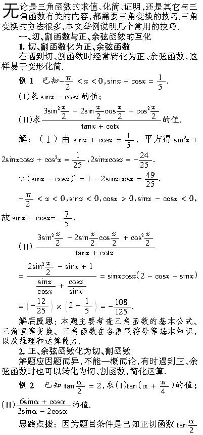 例谈三角变换的常用技巧