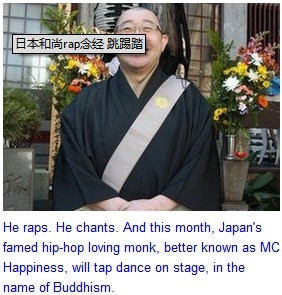 He raps. He chants. And this month, Japan's famed hip-hop loving monk, better known as MC Happiness, will tap dance on stage, in the name of Buddhism.