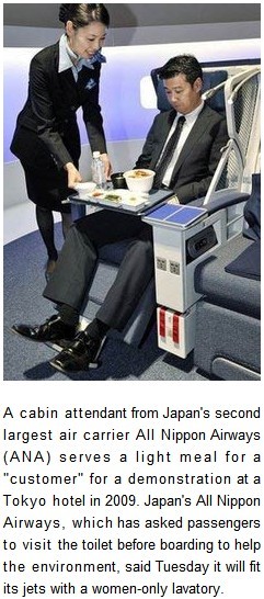 Japan's All Nippon Airways, which has asked passengers to visit the toilet before boarding to help the environment, said Tuesday it will fit its jets with a women-only lavatory.