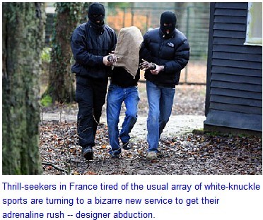 Thrill-seekers in France tired of the usual array of white-knuckle sports are turning to a bizarre new service to get their adrenaline rush -- designer abduction.